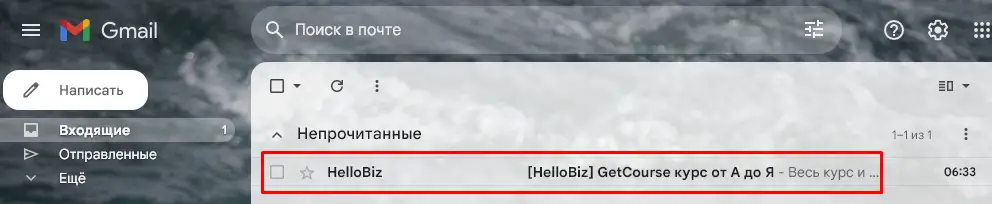 Найдите письмо от me@hellobiz.ru с темой "[HelloBiz] Ваш бонусный урок и доступ к курсу".